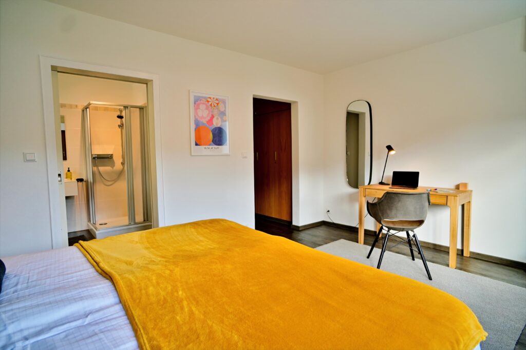 2 Schlafzimmer mit Boxspringbetten180x200 cm und jeweils eigene Dusche und WC.